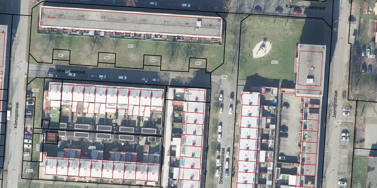 Gebruik de zoekbalk of klik op een perceel om informatie over het perceel te bekijken.