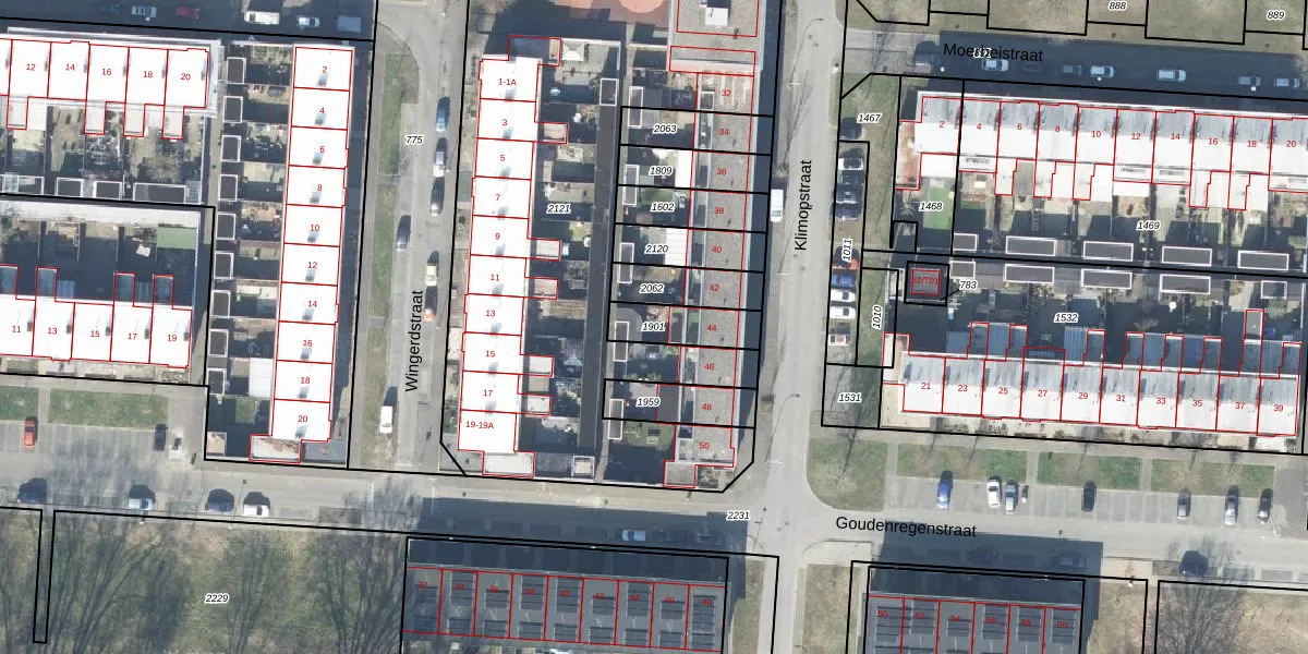 Gebruik de zoekbalk of klik op een perceel om informatie over het perceel te bekijken.