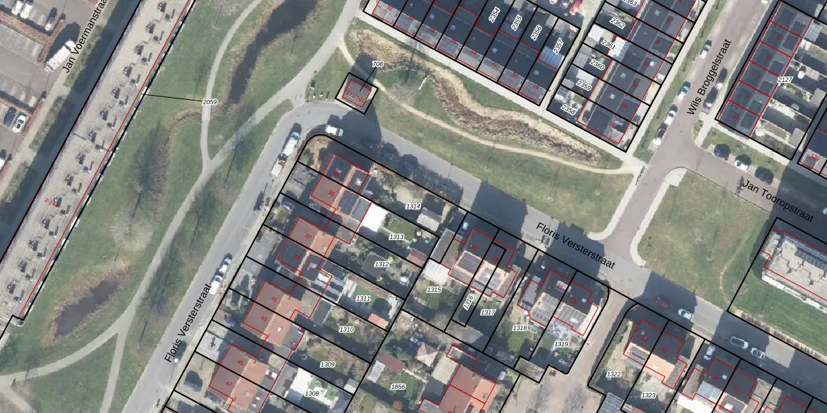 Gebruik de zoekbalk of klik op een perceel om informatie over het perceel te bekijken.