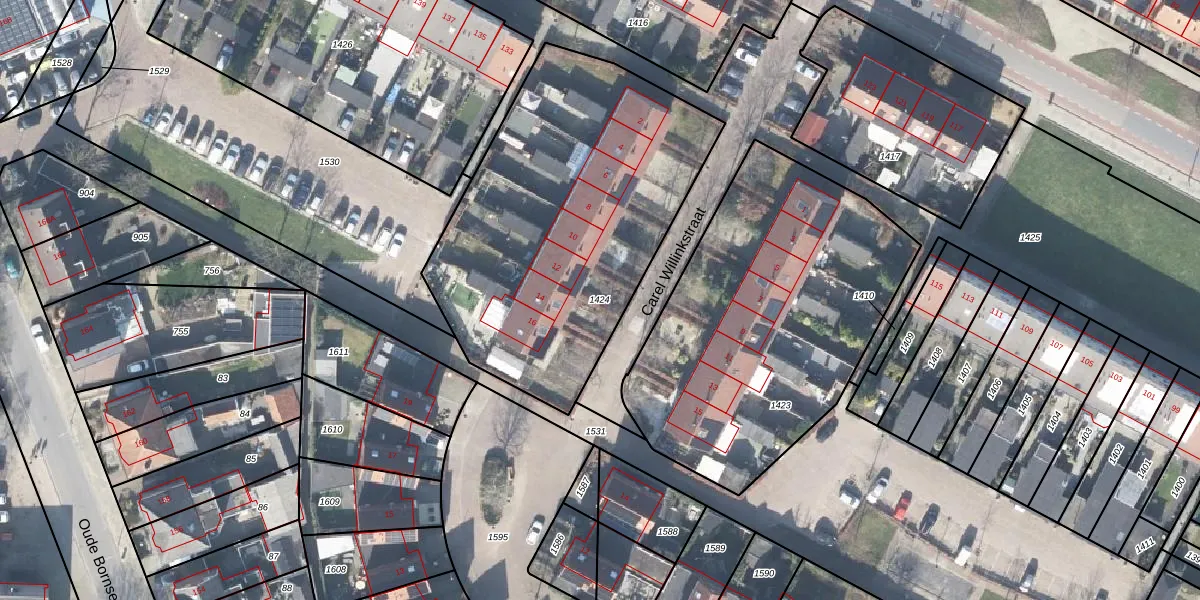 Gebruik de zoekbalk of klik op een perceel om informatie over het perceel te bekijken.