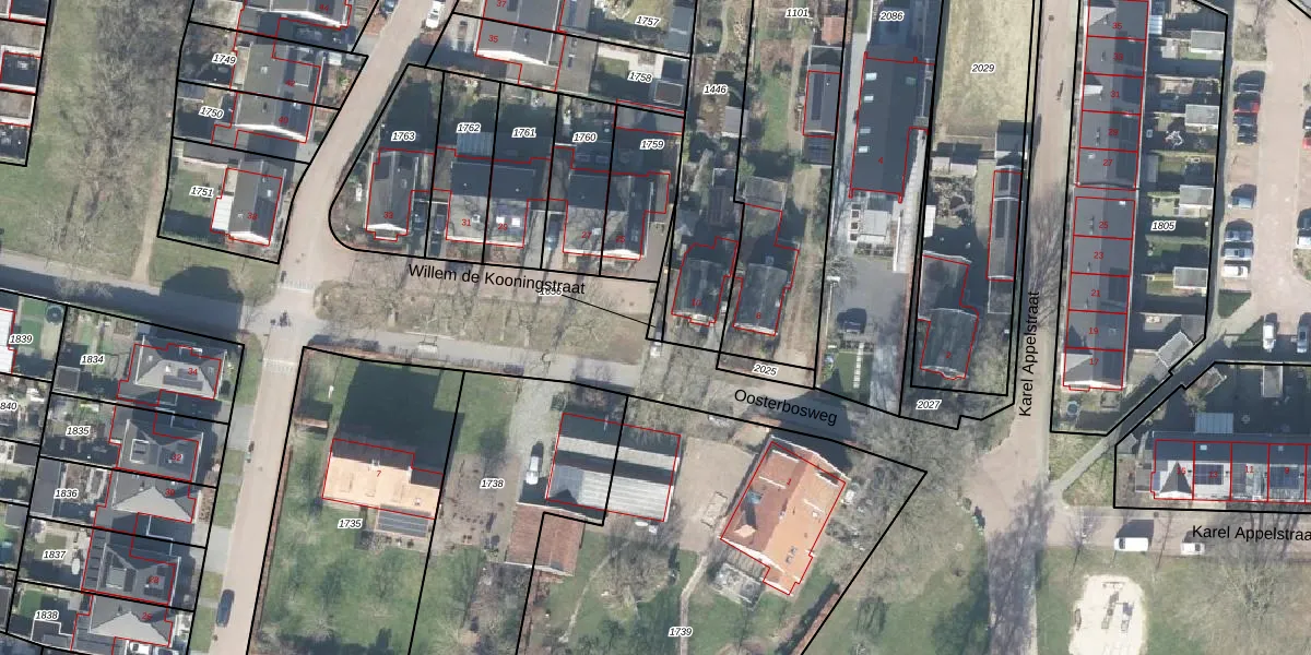 Gebruik de zoekbalk of klik op een perceel om informatie over het perceel te bekijken.