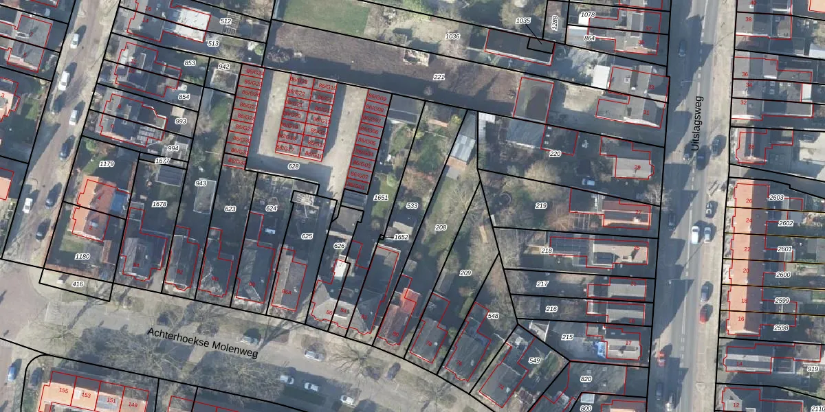 Gebruik de zoekbalk of klik op een perceel om informatie over het perceel te bekijken.