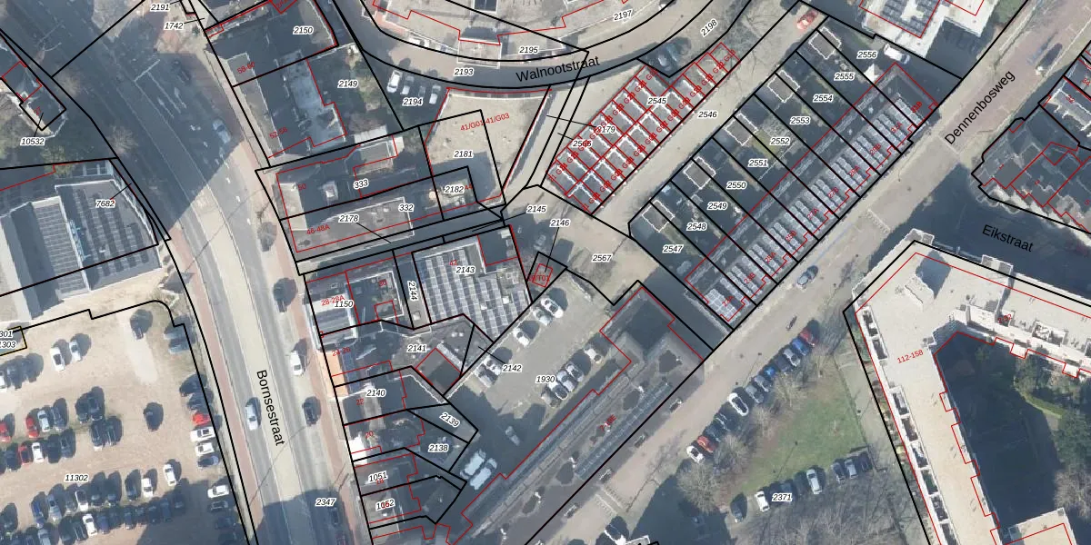 Gebruik de zoekbalk of klik op een perceel om informatie over het perceel te bekijken.