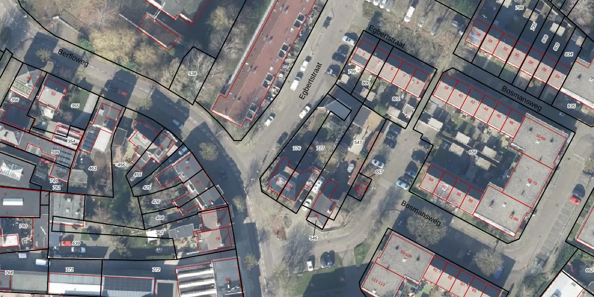 Gebruik de zoekbalk of klik op een perceel om informatie over het perceel te bekijken.