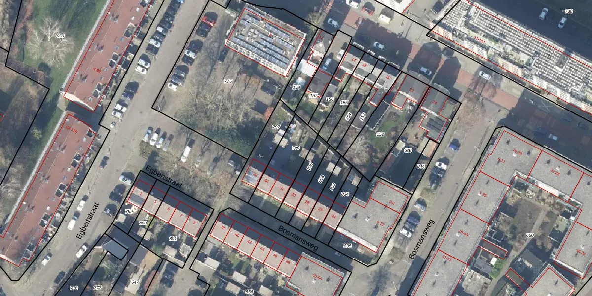 Gebruik de zoekbalk of klik op een perceel om informatie over het perceel te bekijken.