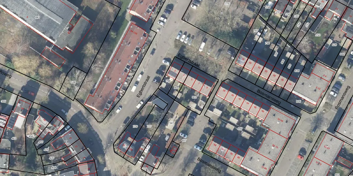 Gebruik de zoekbalk of klik op een perceel om informatie over het perceel te bekijken.