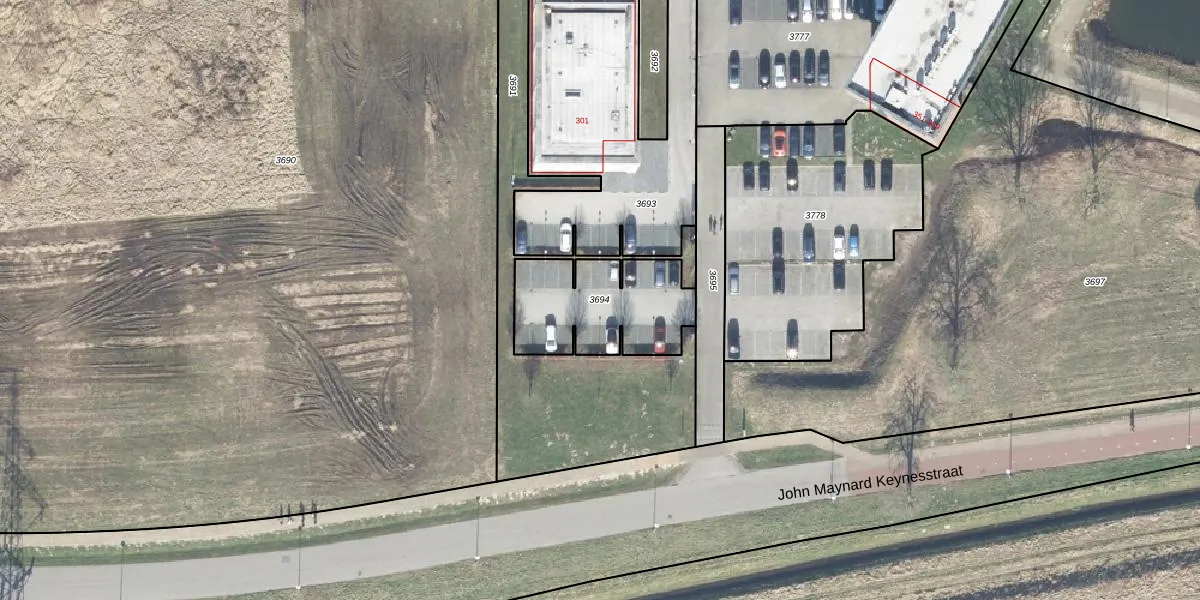 Gebruik de zoekbalk of klik op een perceel om informatie over het perceel te bekijken.
