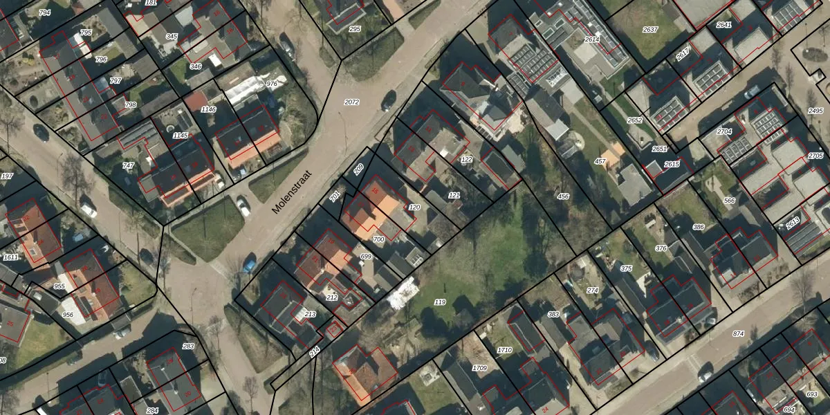 Gebruik de zoekbalk of klik op een perceel om informatie over het perceel te bekijken.
