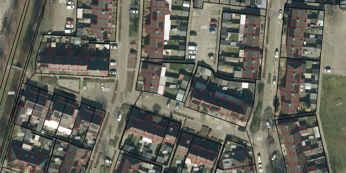 Gebruik de zoekbalk of klik op een perceel om informatie over het perceel te bekijken.