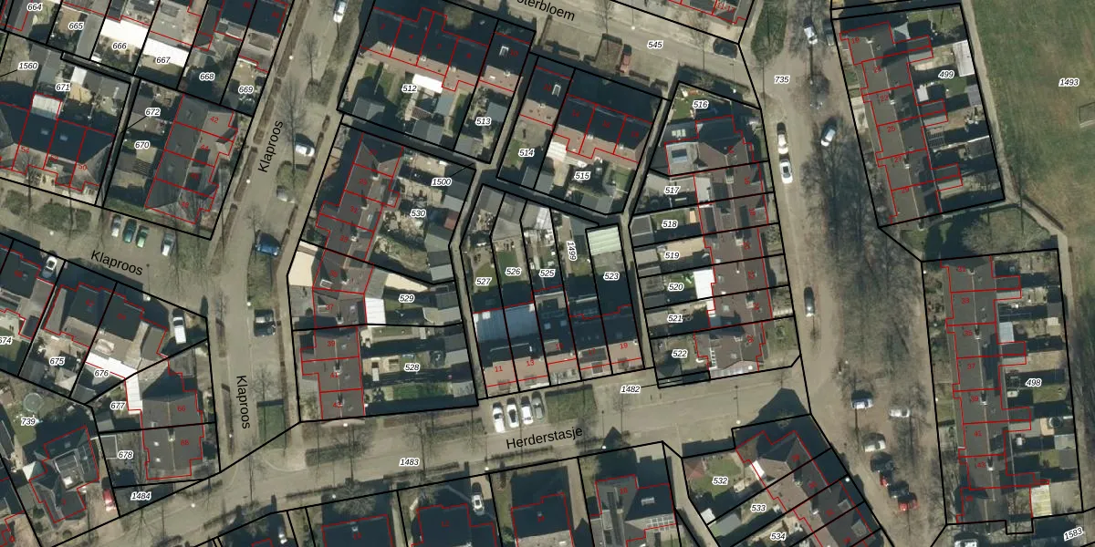 Gebruik de zoekbalk of klik op een perceel om informatie over het perceel te bekijken.