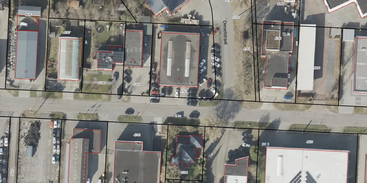 Gebruik de zoekbalk of klik op een perceel om informatie over het perceel te bekijken.