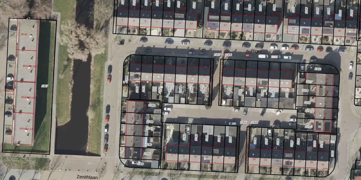 Gebruik de zoekbalk of klik op een perceel om informatie over het perceel te bekijken.