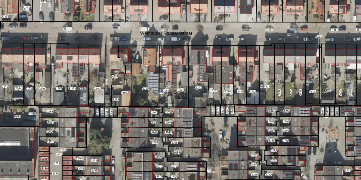 Gebruik de zoekbalk of klik op een perceel om informatie over het perceel te bekijken.