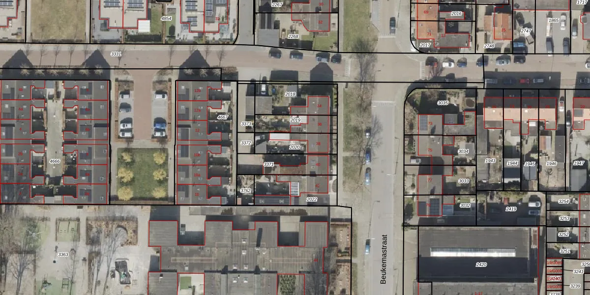 Gebruik de zoekbalk of klik op een perceel om informatie over het perceel te bekijken.