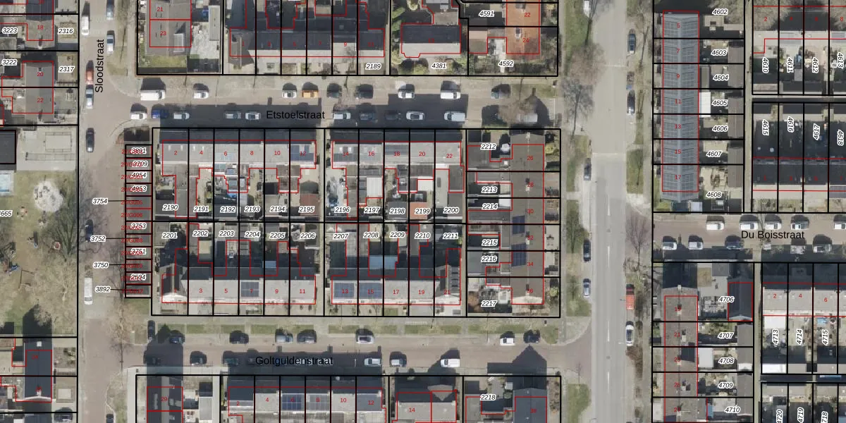 Gebruik de zoekbalk of klik op een perceel om informatie over het perceel te bekijken.