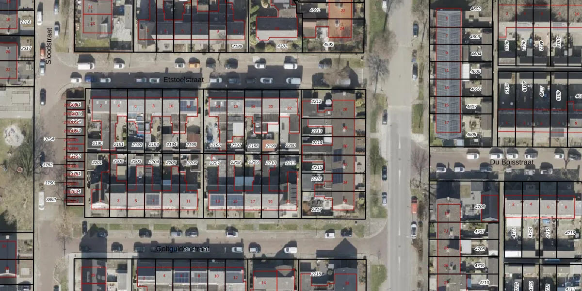 Gebruik de zoekbalk of klik op een perceel om informatie over het perceel te bekijken.