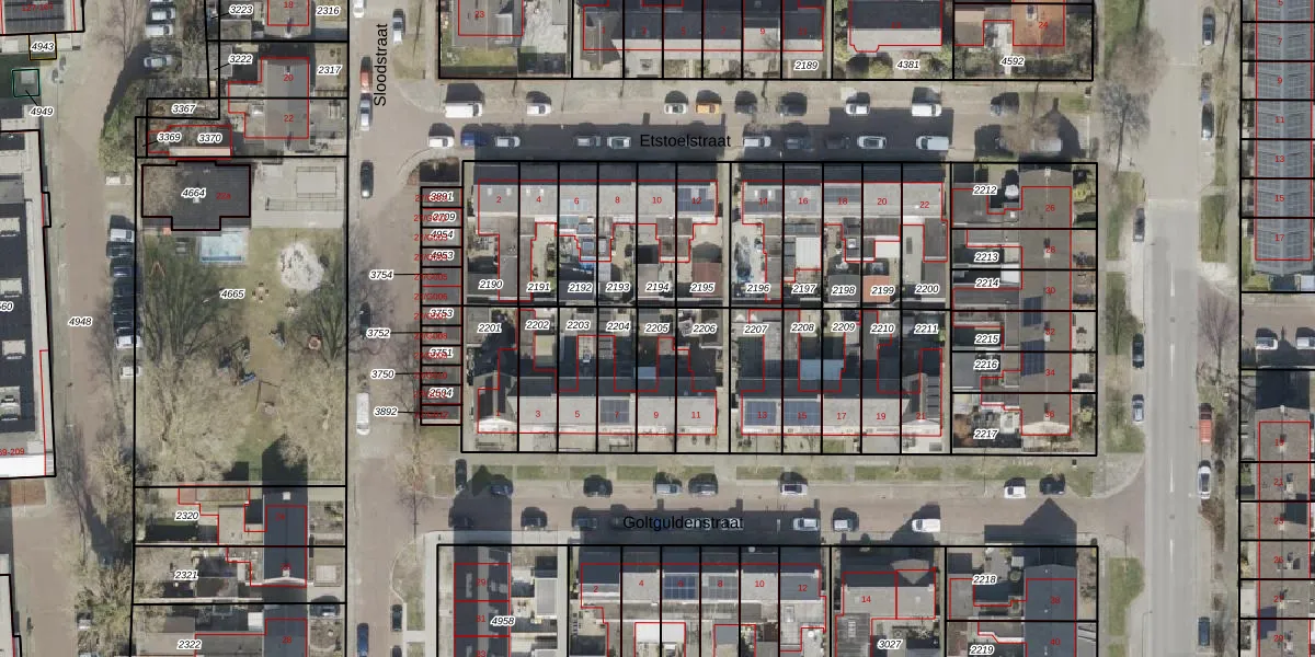 Gebruik de zoekbalk of klik op een perceel om informatie over het perceel te bekijken.