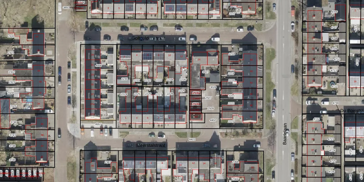 Gebruik de zoekbalk of klik op een perceel om informatie over het perceel te bekijken.