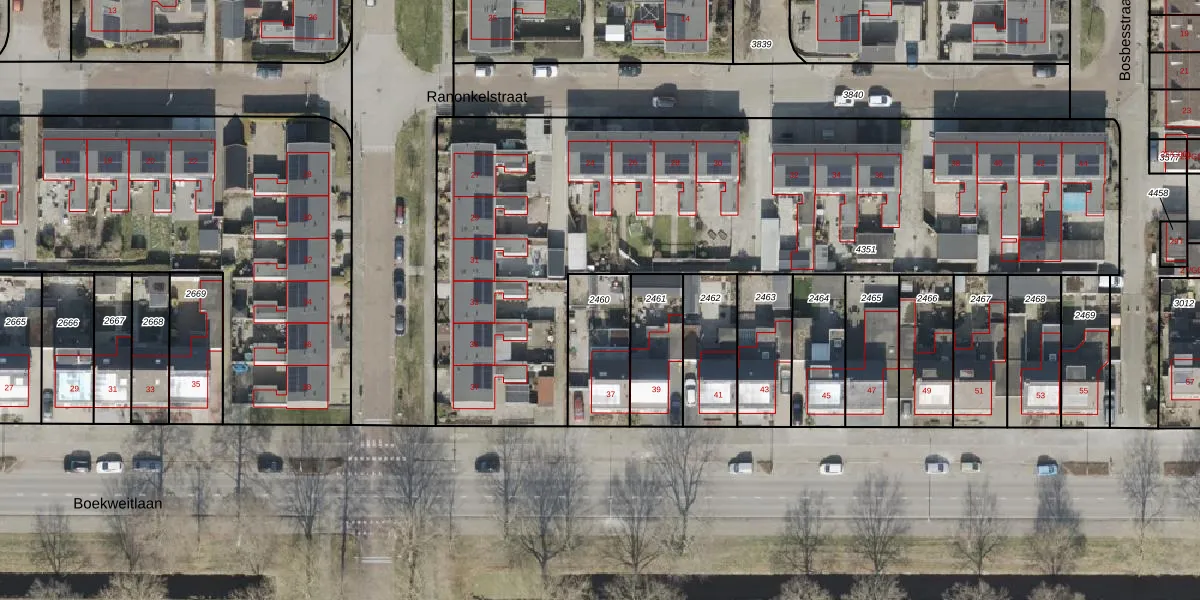 Gebruik de zoekbalk of klik op een perceel om informatie over het perceel te bekijken.