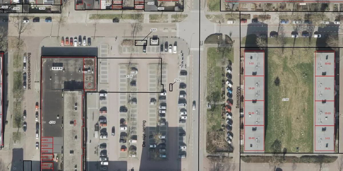 Gebruik de zoekbalk of klik op een perceel om informatie over het perceel te bekijken.