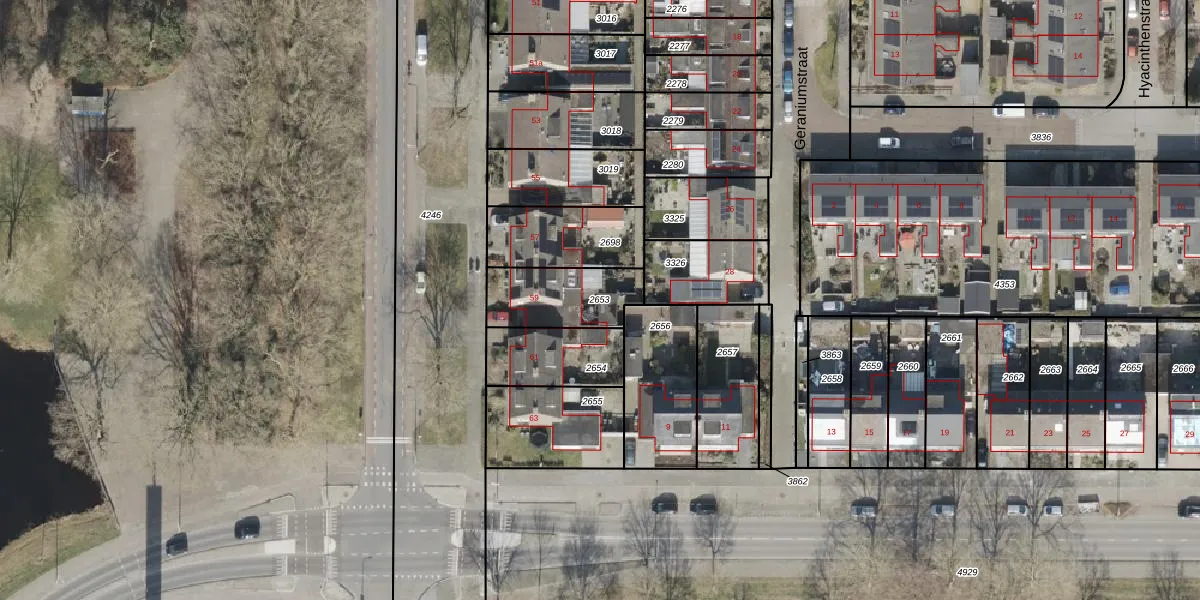 Gebruik de zoekbalk of klik op een perceel om informatie over het perceel te bekijken.