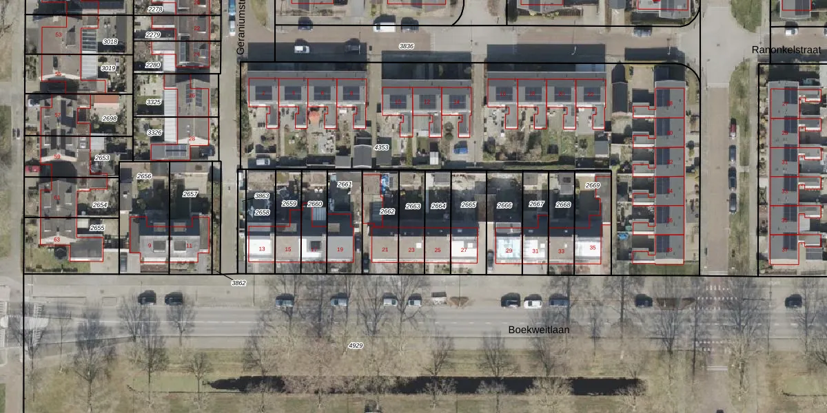 Gebruik de zoekbalk of klik op een perceel om informatie over het perceel te bekijken.