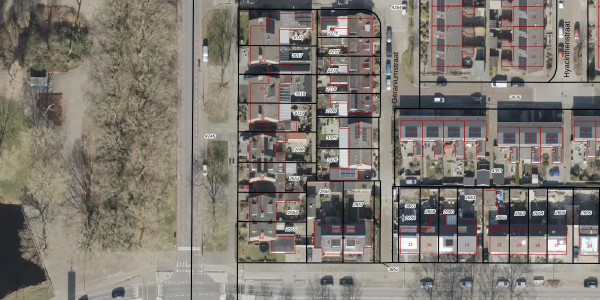 Gebruik de zoekbalk of klik op een perceel om informatie over het perceel te bekijken.