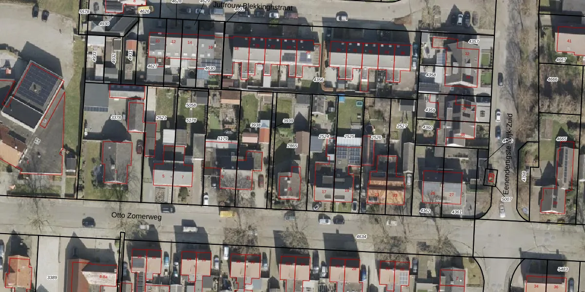 Gebruik de zoekbalk of klik op een perceel om informatie over het perceel te bekijken.