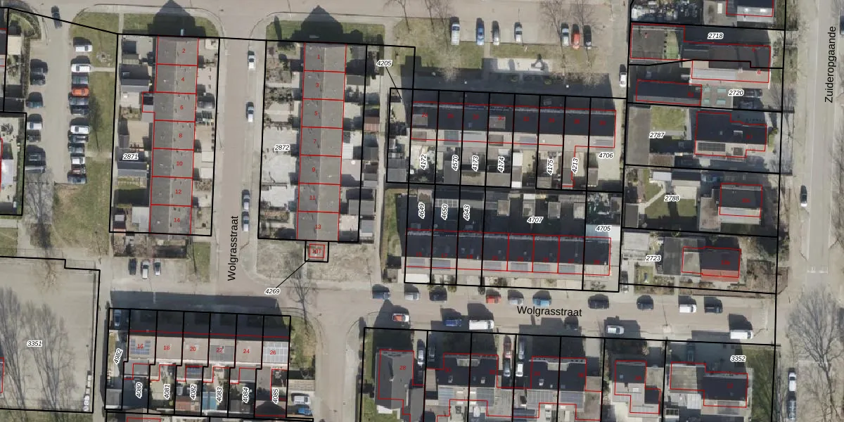Gebruik de zoekbalk of klik op een perceel om informatie over het perceel te bekijken.