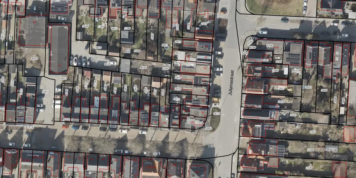 Gebruik de zoekbalk of klik op een perceel om informatie over het perceel te bekijken.