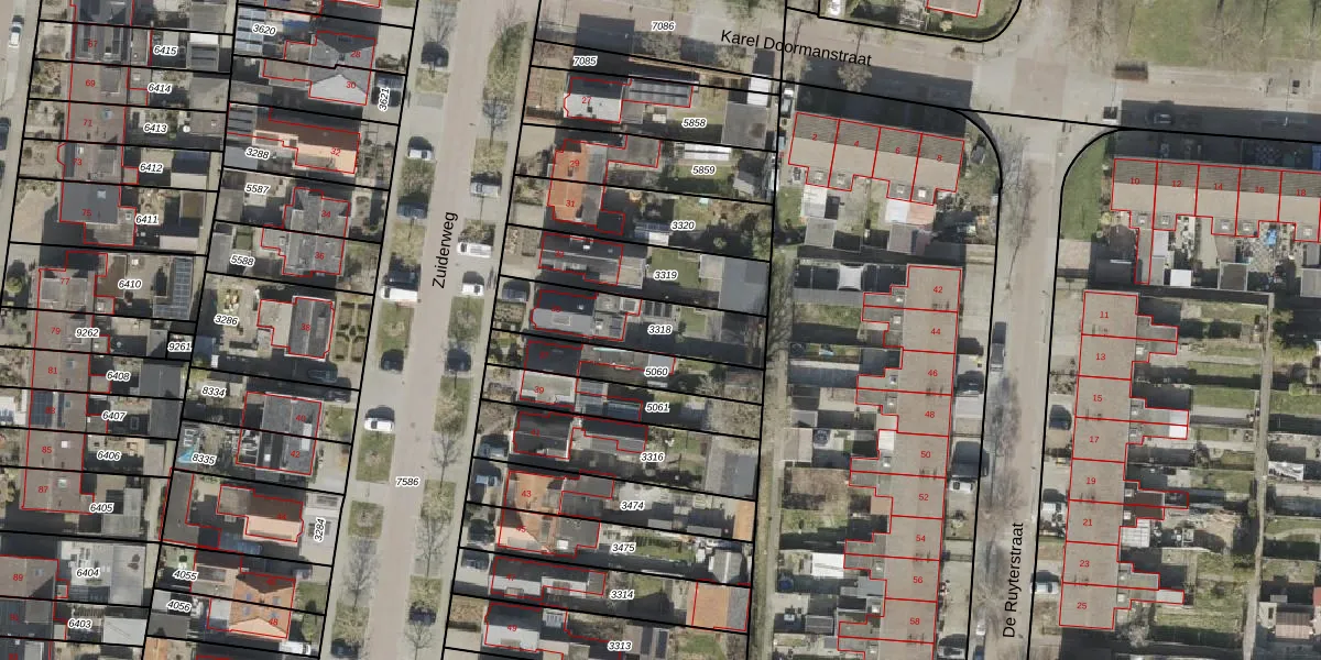 Gebruik de zoekbalk of klik op een perceel om informatie over het perceel te bekijken.