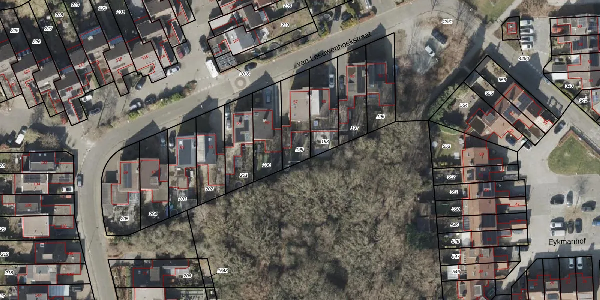 Gebruik de zoekbalk of klik op een perceel om informatie over het perceel te bekijken.