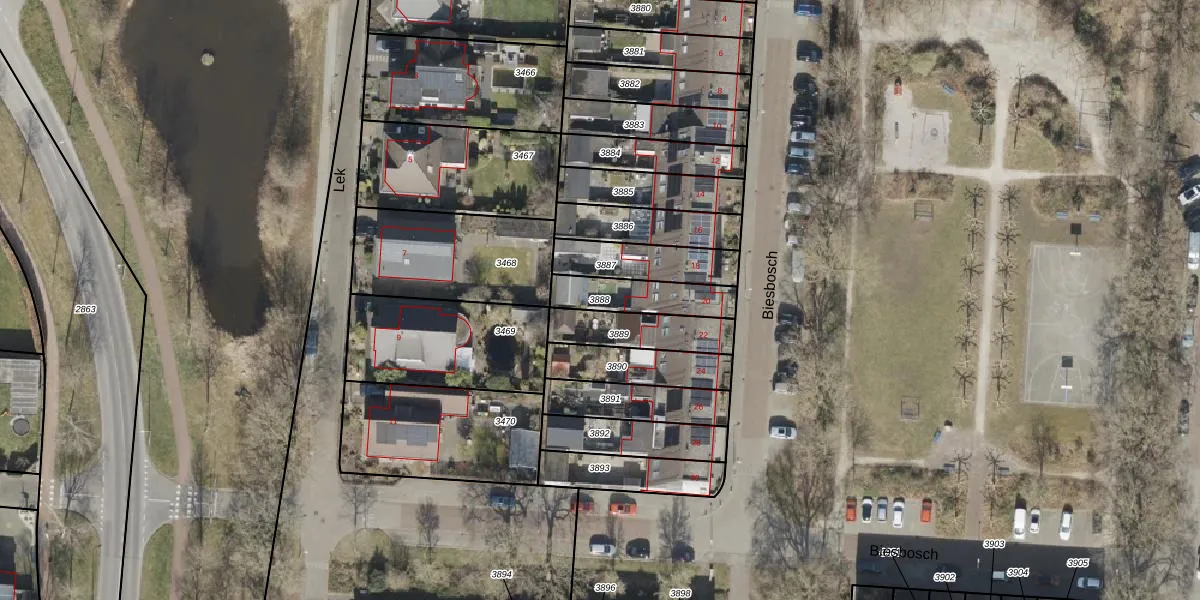Gebruik de zoekbalk of klik op een perceel om informatie over het perceel te bekijken.