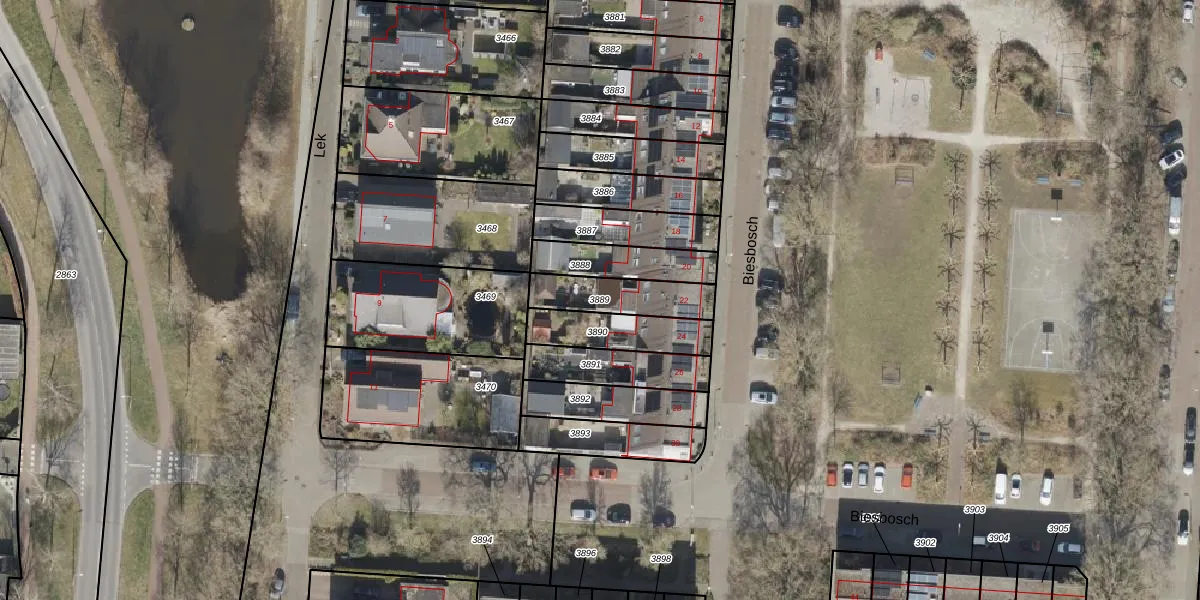 Gebruik de zoekbalk of klik op een perceel om informatie over het perceel te bekijken.
