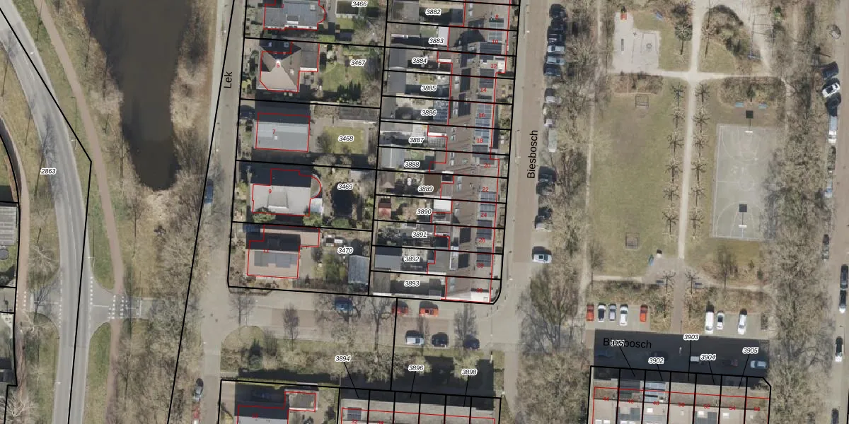 Gebruik de zoekbalk of klik op een perceel om informatie over het perceel te bekijken.