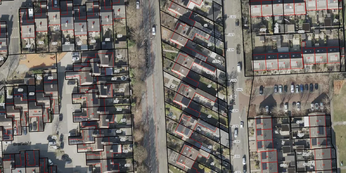 Gebruik de zoekbalk of klik op een perceel om informatie over het perceel te bekijken.