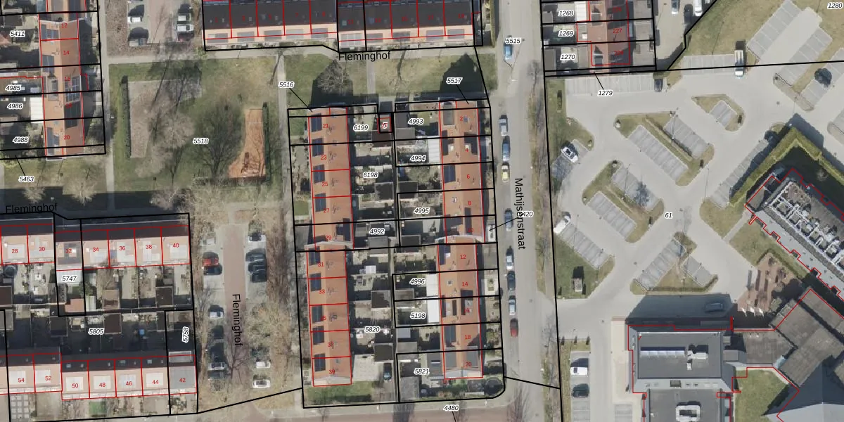 Gebruik de zoekbalk of klik op een perceel om informatie over het perceel te bekijken.