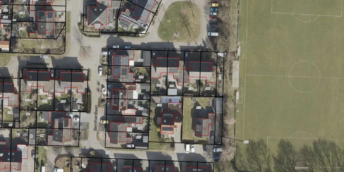 Gebruik de zoekbalk of klik op een perceel om informatie over het perceel te bekijken.