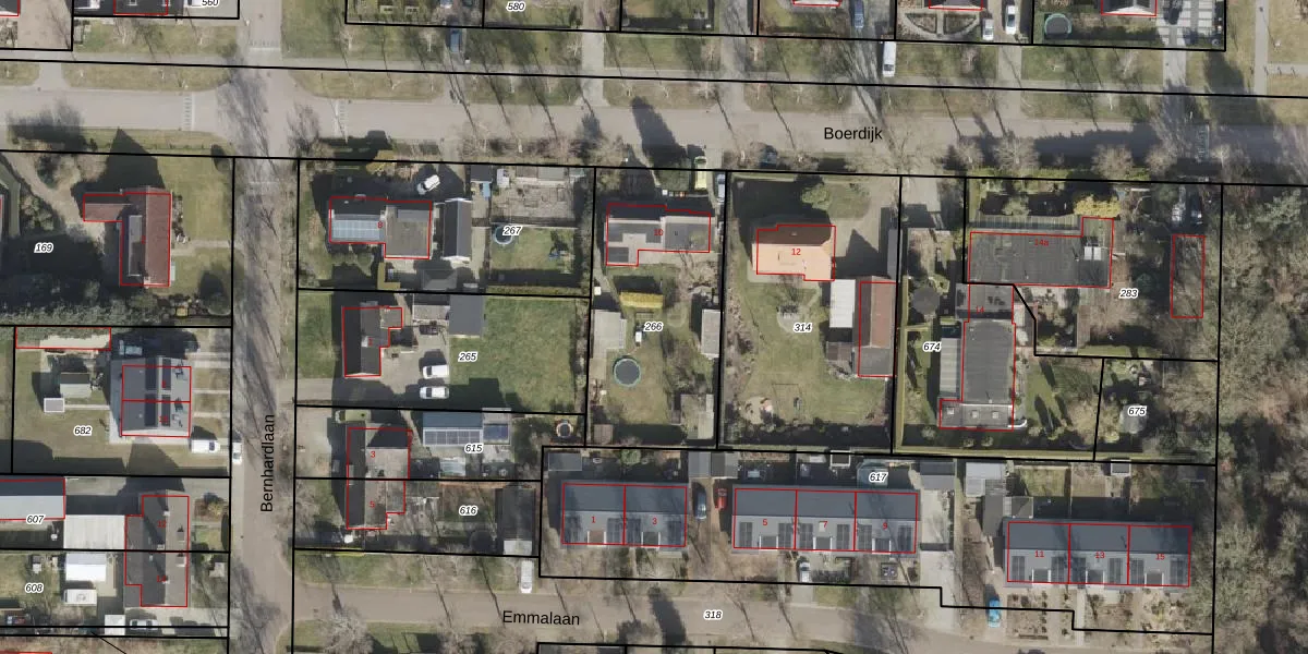 Gebruik de zoekbalk of klik op een perceel om informatie over het perceel te bekijken.