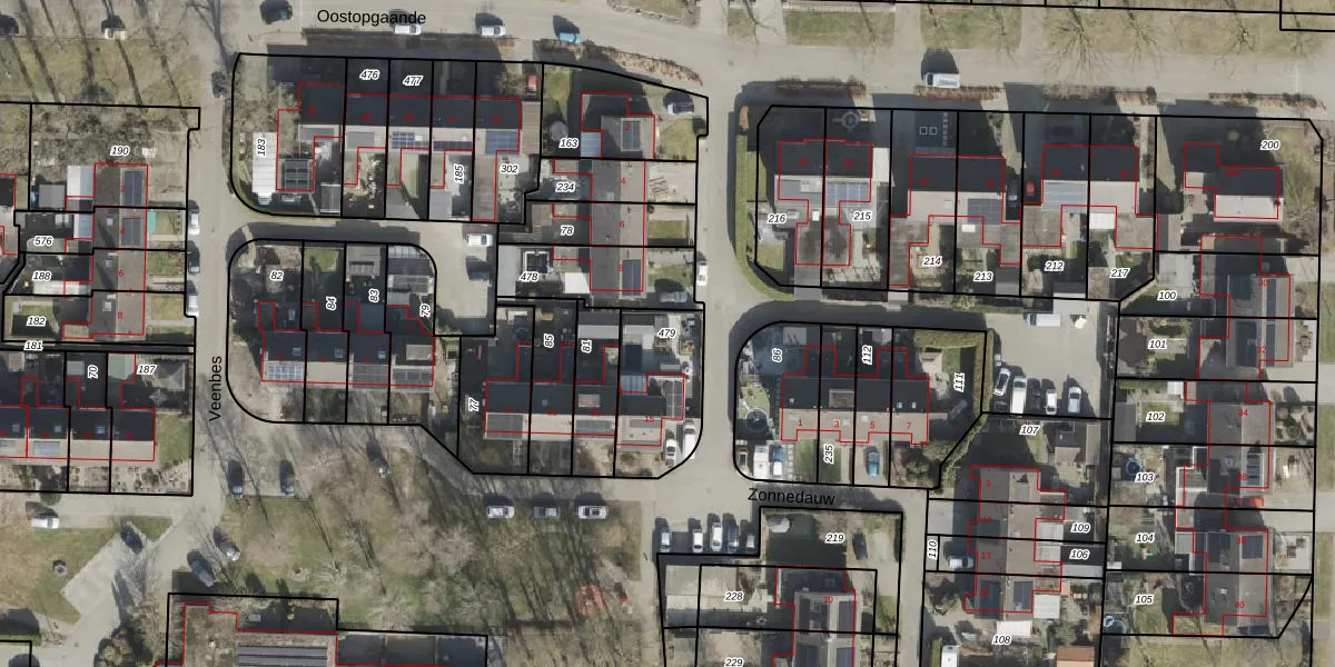 Gebruik de zoekbalk of klik op een perceel om informatie over het perceel te bekijken.