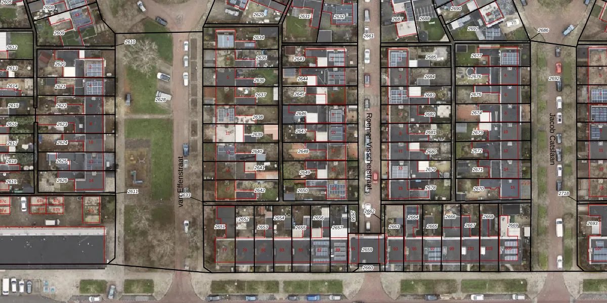 Gebruik de zoekbalk of klik op een perceel om informatie over het perceel te bekijken.