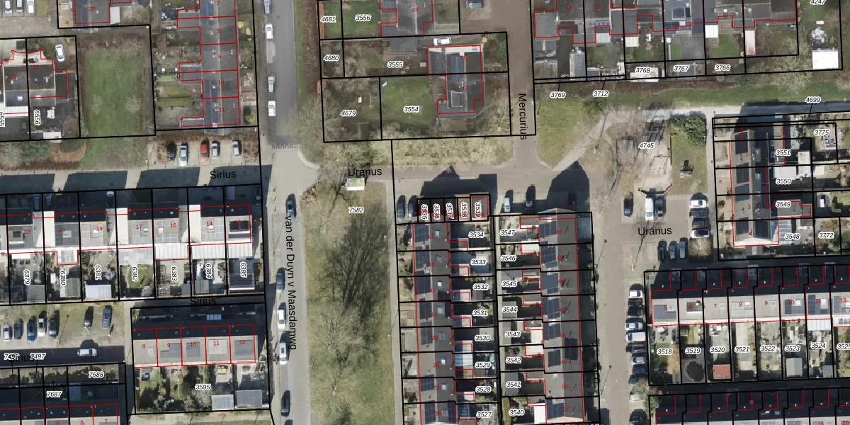 Gebruik de zoekbalk of klik op een perceel om informatie over het perceel te bekijken.