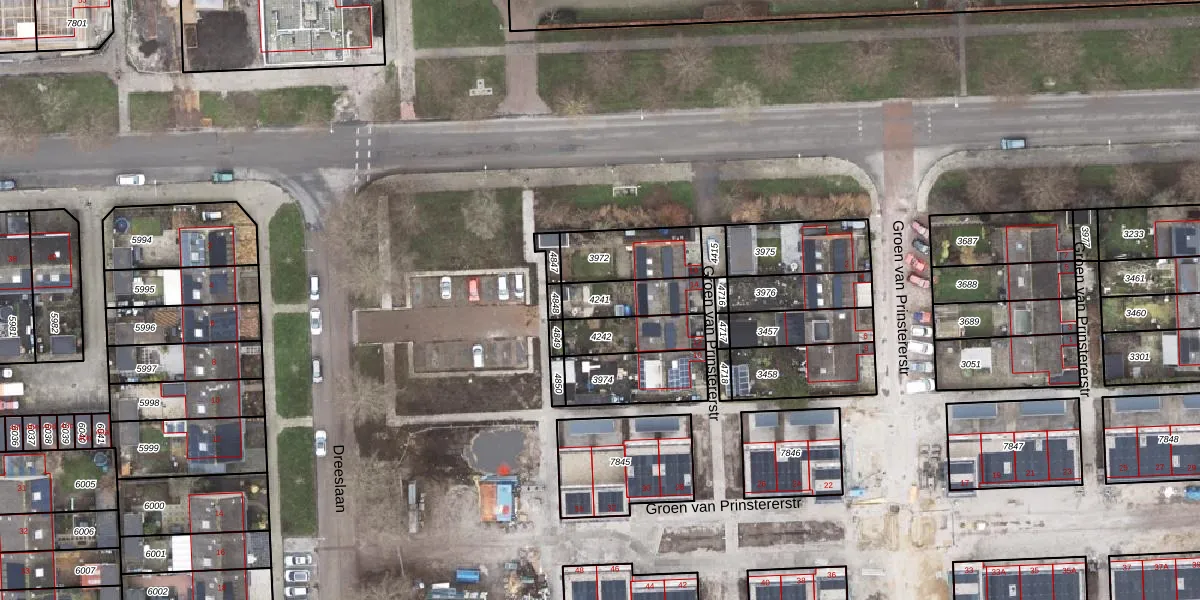 Gebruik de zoekbalk of klik op een perceel om informatie over het perceel te bekijken.