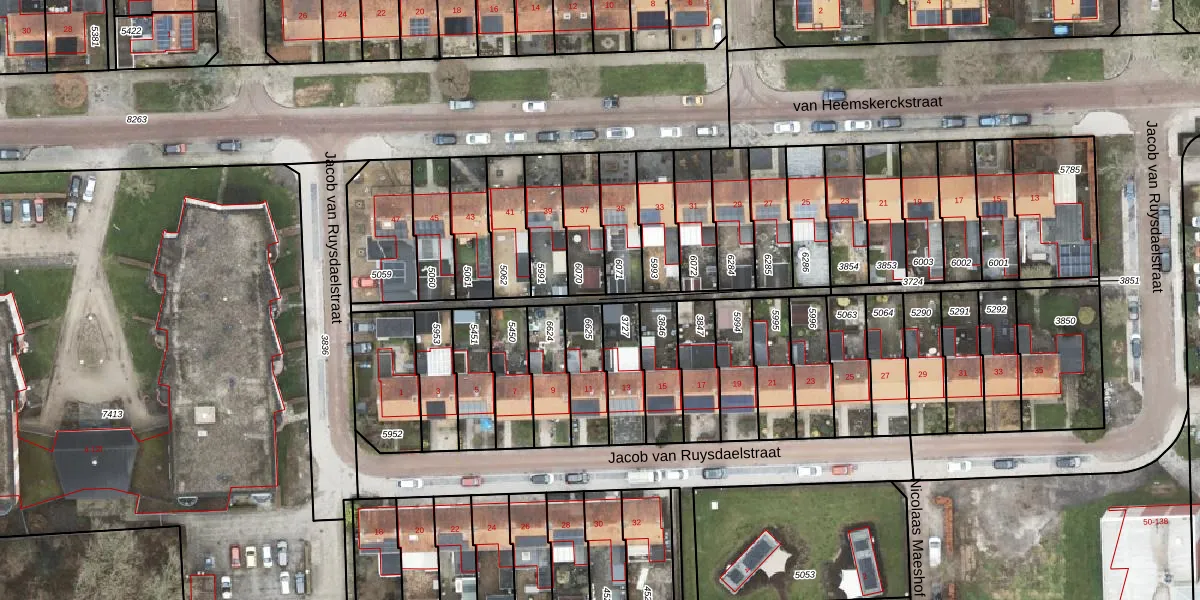 Gebruik de zoekbalk of klik op een perceel om informatie over het perceel te bekijken.