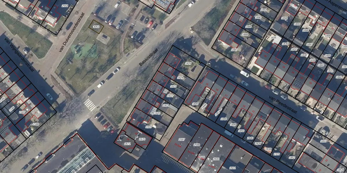 Gebruik de zoekbalk of klik op een perceel om informatie over het perceel te bekijken.