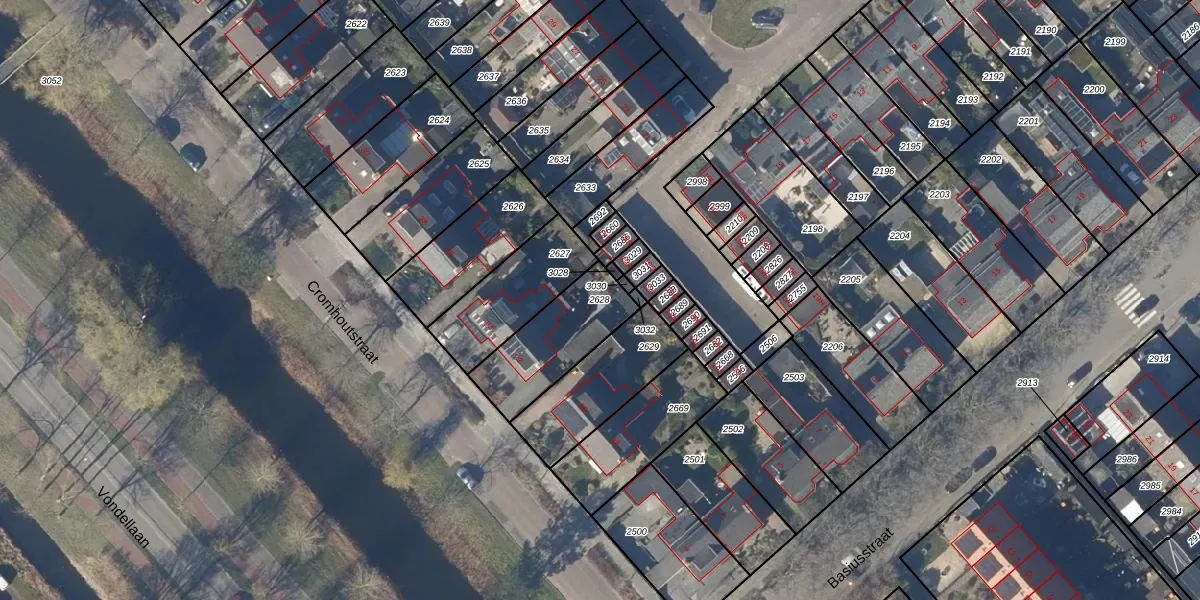 Gebruik de zoekbalk of klik op een perceel om informatie over het perceel te bekijken.