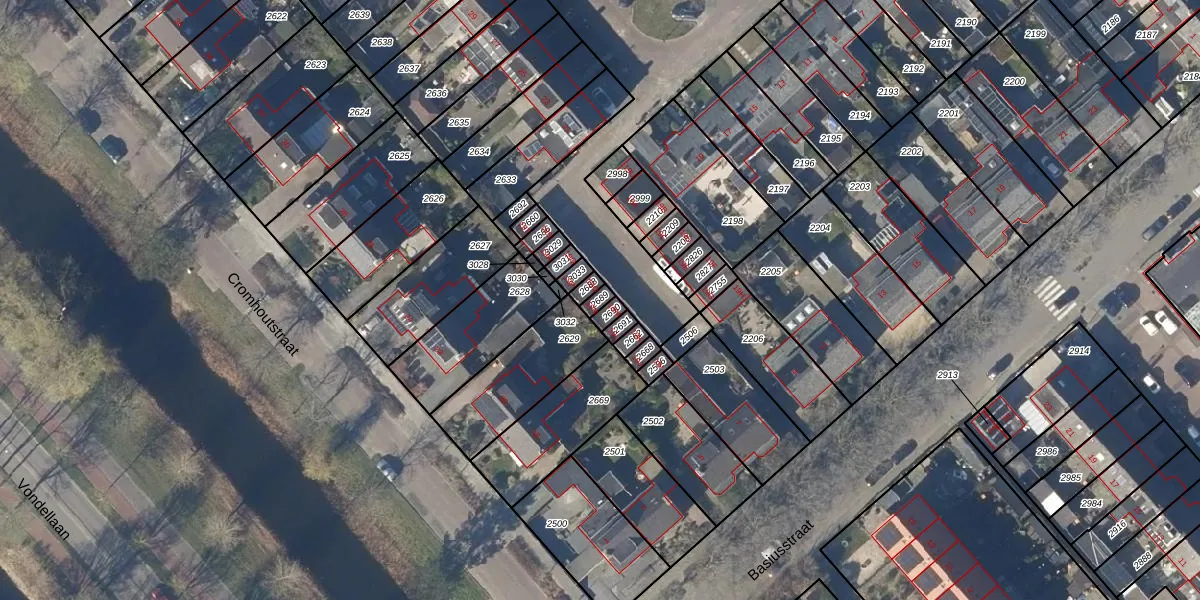 Gebruik de zoekbalk of klik op een perceel om informatie over het perceel te bekijken.