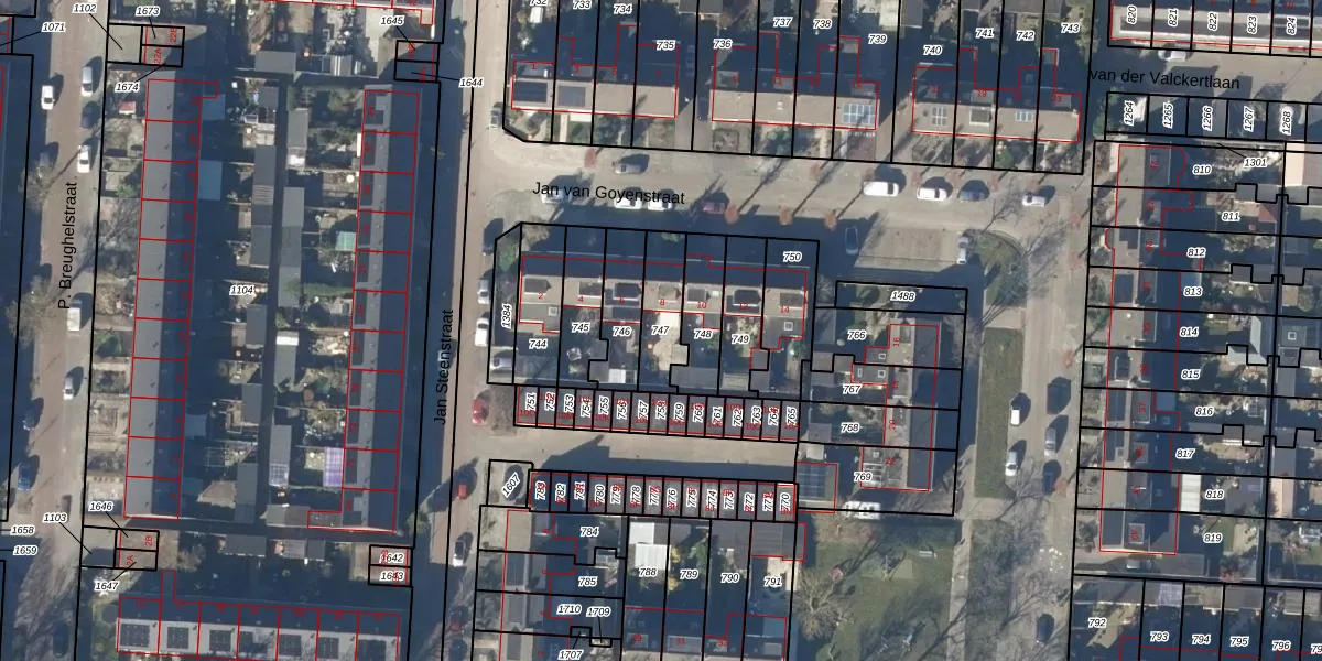 Gebruik de zoekbalk of klik op een perceel om informatie over het perceel te bekijken.