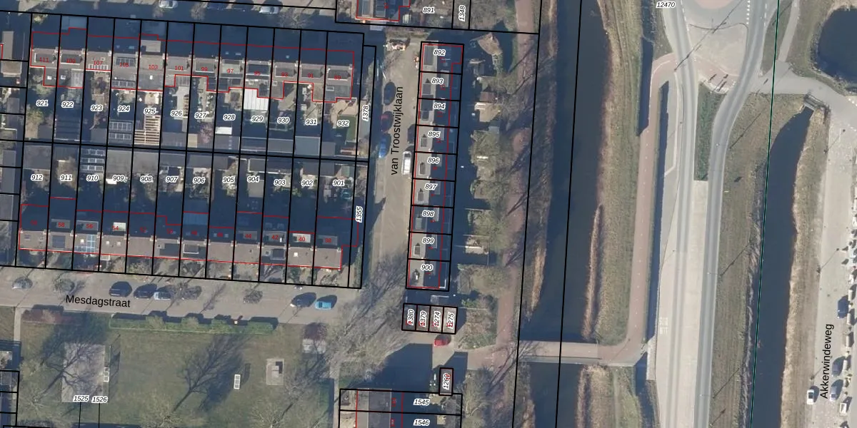 Gebruik de zoekbalk of klik op een perceel om informatie over het perceel te bekijken.