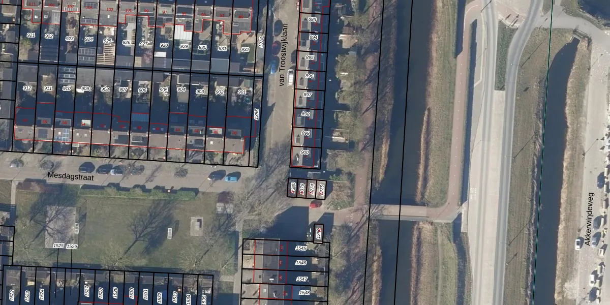 Gebruik de zoekbalk of klik op een perceel om informatie over het perceel te bekijken.